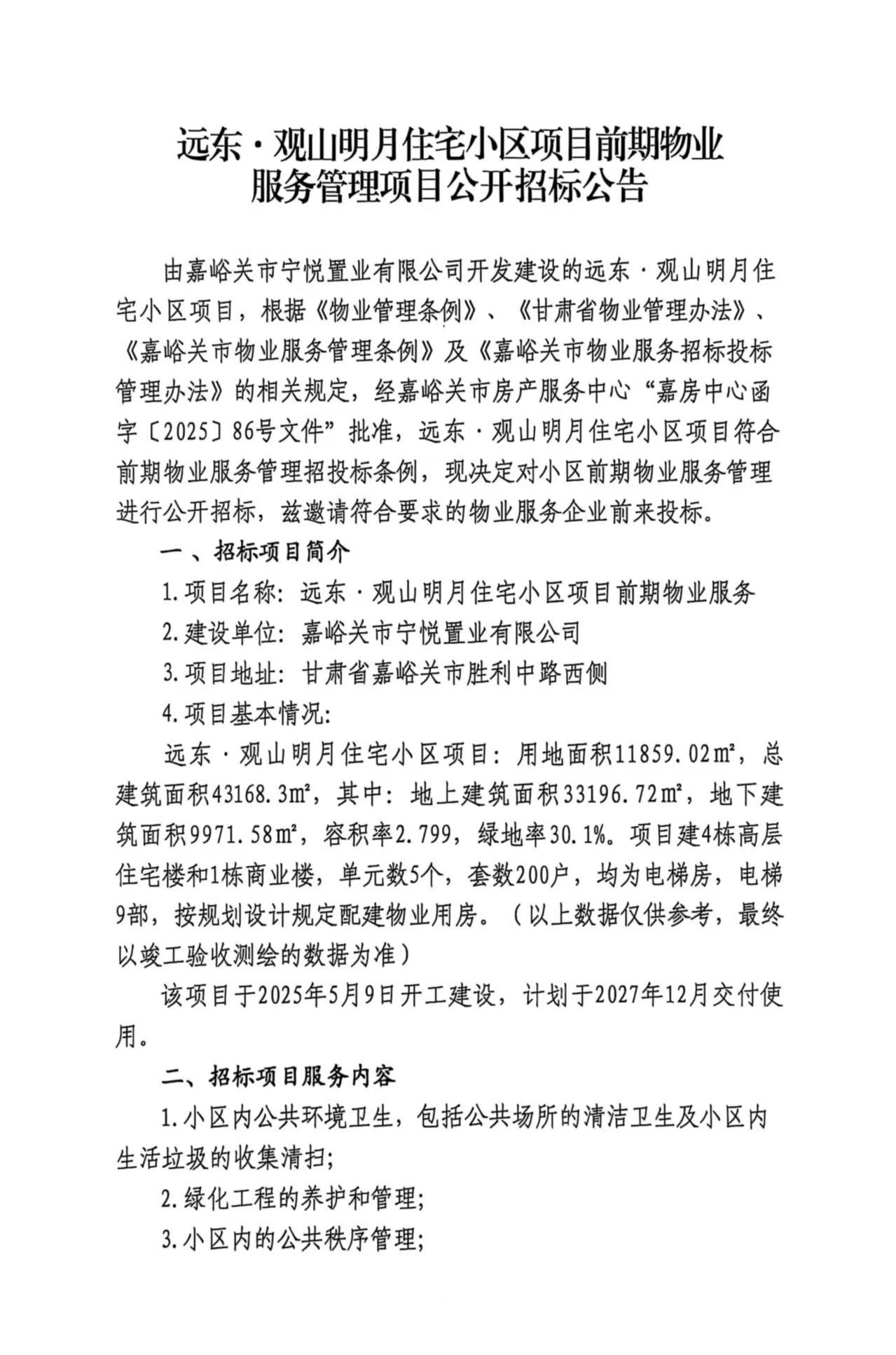 遠東·觀山明月住宅小區(qū)項目前期物業(yè)服務(wù)管理項目公開招標公告
