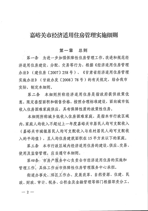 嘉峪關(guān)市經(jīng)濟(jì)適用住房管理實(shí)施細(xì)則