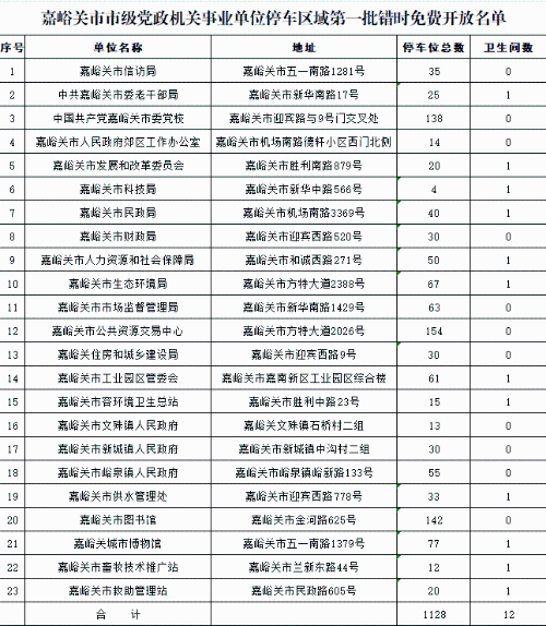 ? ?附件:嘉峪關(guān)市市級黨政機關(guān)事業(yè)單位停車區(qū)域第一批錯時免費開放名單