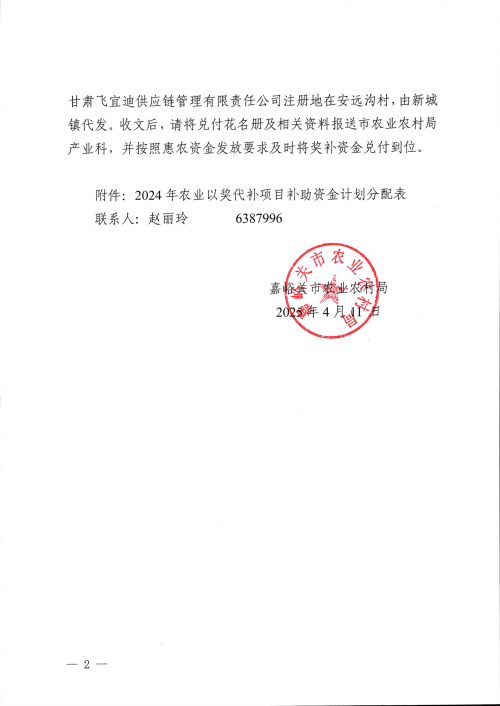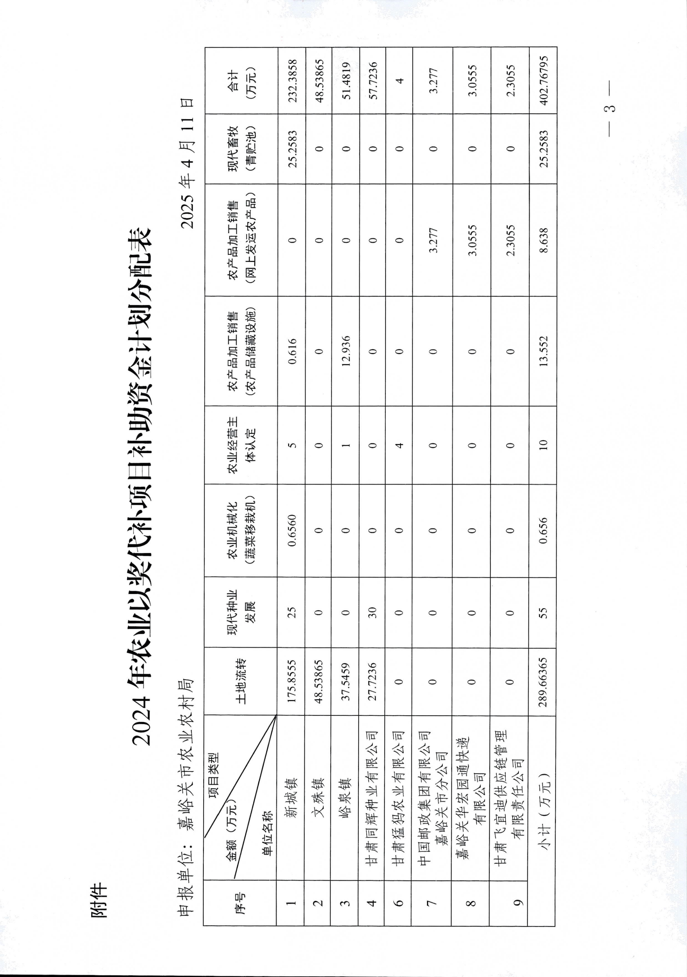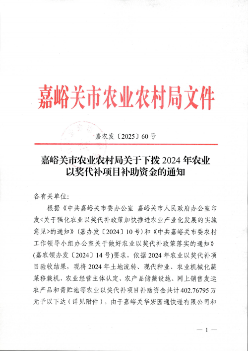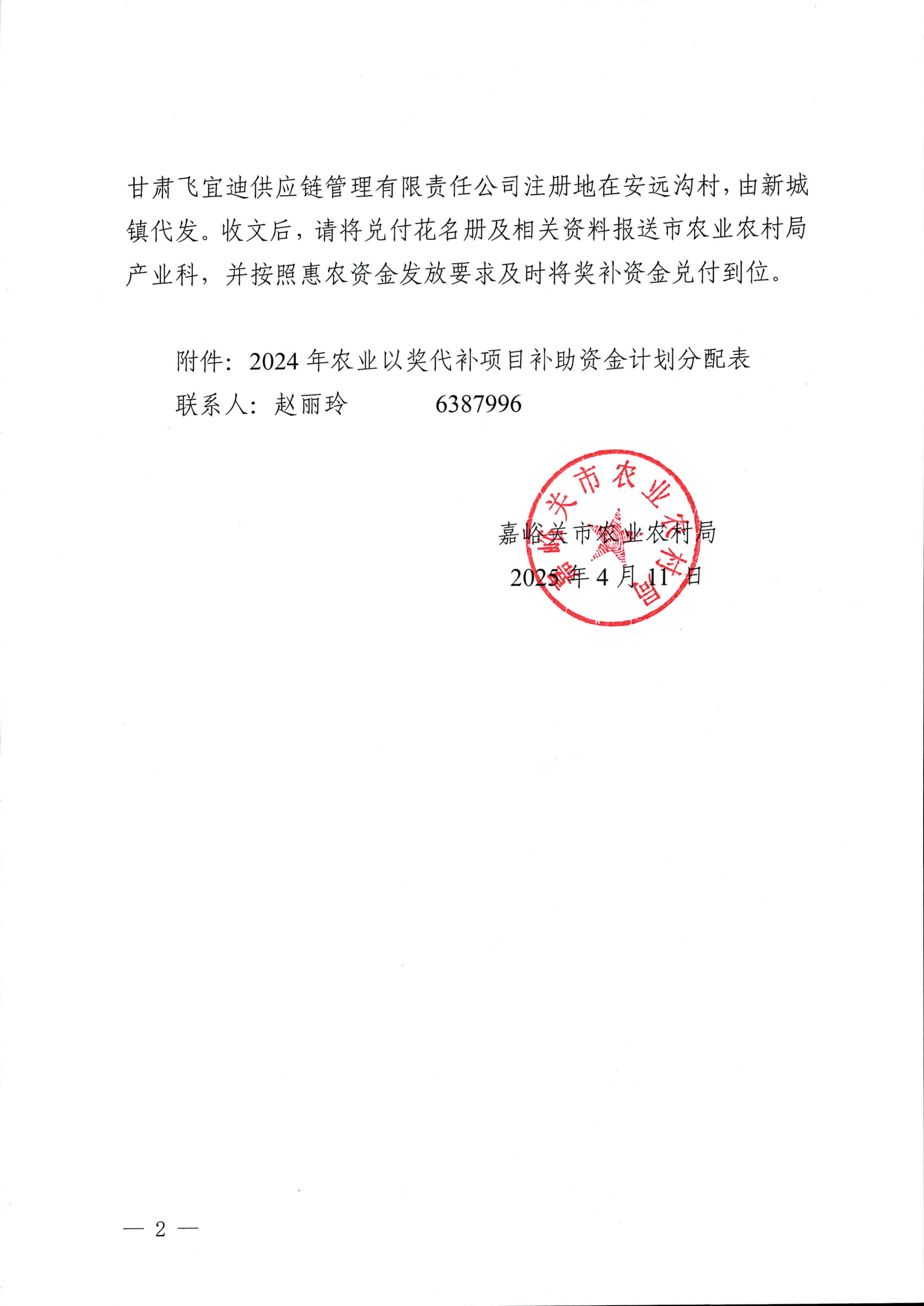 嘉峪關市農業農村局關于下撥2024年農業以獎代補項目補助資金 的通知