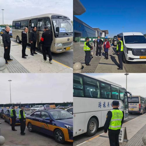 機(jī)場(chǎng):乘客的“飛行領(lǐng)航員”。上午10時(shí),機(jī)場(chǎng)執(zhí)勤組到達(dá)機(jī)場(chǎng),主動(dòng)與機(jī)場(chǎng)工作人員溝通交流,了解航班起降、旅客流量等關(guān)鍵信息,認(rèn)真察看機(jī)場(chǎng)巴士、出租車(chē)等交通工具的調(diào)度情況,確保每一趟航班對(duì)應(yīng)的地面交通銜接順暢,用實(shí)際行動(dòng)為乘客的“飛行之旅”保駕護(hù)航。