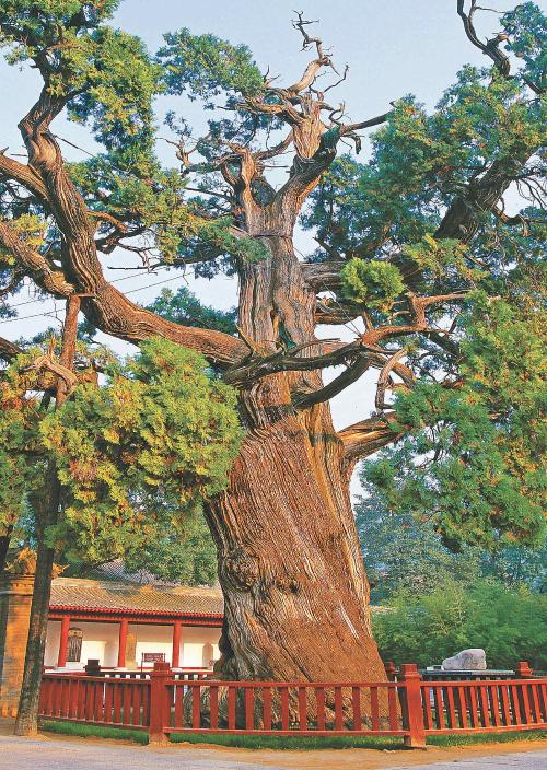 古樹名木承載著歷史的記憶,它們在大地上生長,閃爍著光彩絢麗的歷史文化色澤。“赫赫始祖,吾華肇造。胄衍祀綿,岳峨河浩。”黃帝,被尊稱為“人文初祖”。他播百谷草木,大力發(fā)展生產(chǎn)。一株位于陜西省黃陵縣軒轅廟的古柏,相傳是黃帝親手栽植,樹齡約5000年。它見證了中華民族的發(fā)展歷程,至今仍蒼翠挺拔,枝繁葉茂,顯示出無比強大的生命力。