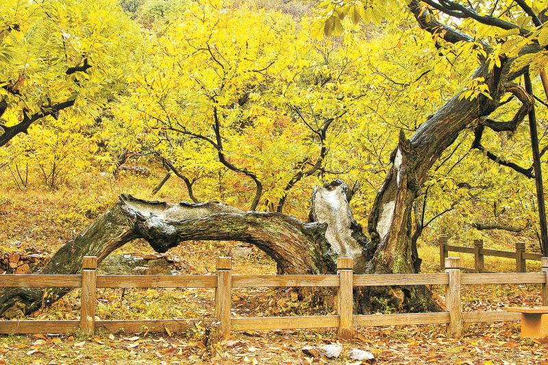 古樹與民生福祉密切相關(guān)。浙江諸暨趙家鎮(zhèn)榧王村的香榧古樹樹齡1300多年,最高年產(chǎn)香榧達(dá)750公斤。香榧集食用、藥用、油用、材用和觀賞性于一體,成為會稽山區(qū)廣大農(nóng)民的重要收入之一。北京懷柔素有“中國板栗之鄉(xiāng)”的美譽,栗樹栽培歷史悠久。懷柔的古栗樹樹齡700年,粗大的樹干裂為三瓣卻又落地支撐后分為三株長成。