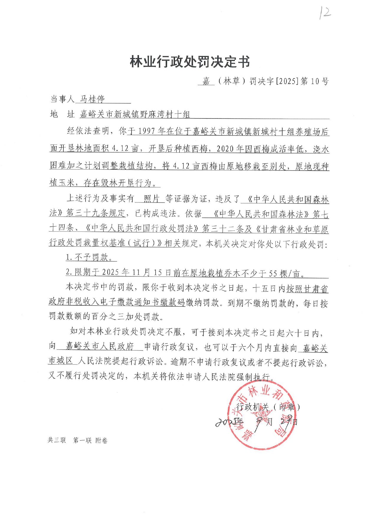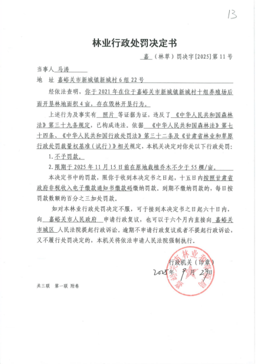 林業(yè)行政處罰決定書
