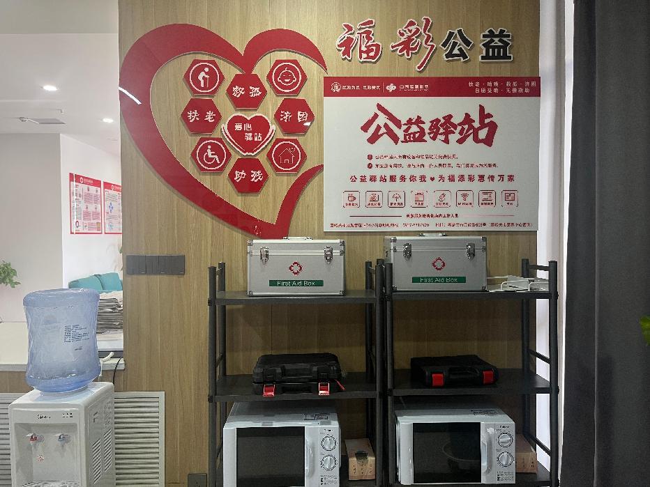 走進福彩公益驛站,完備的設施映入眼簾。休息區內,桌椅擺放整齊,為他們提供一個暫時休憩的港灣。應急醫藥箱里,常用藥品一應俱全,無論是小磕小碰還是突發不適,都能在這里找到及時的幫助;充電器和插座隨時待命,為電量告急的手機和電子設備提供源源不斷的能量;飲水機中熱水常滿,暖身更暖心;共享雨傘則如同雨中的守護者,為行人遮風擋雨,讓每一步都走得更加從容;而工具箱中的各式工具,則能解決一些簡單的維修問題,讓生活中的小麻煩迎刃而解。