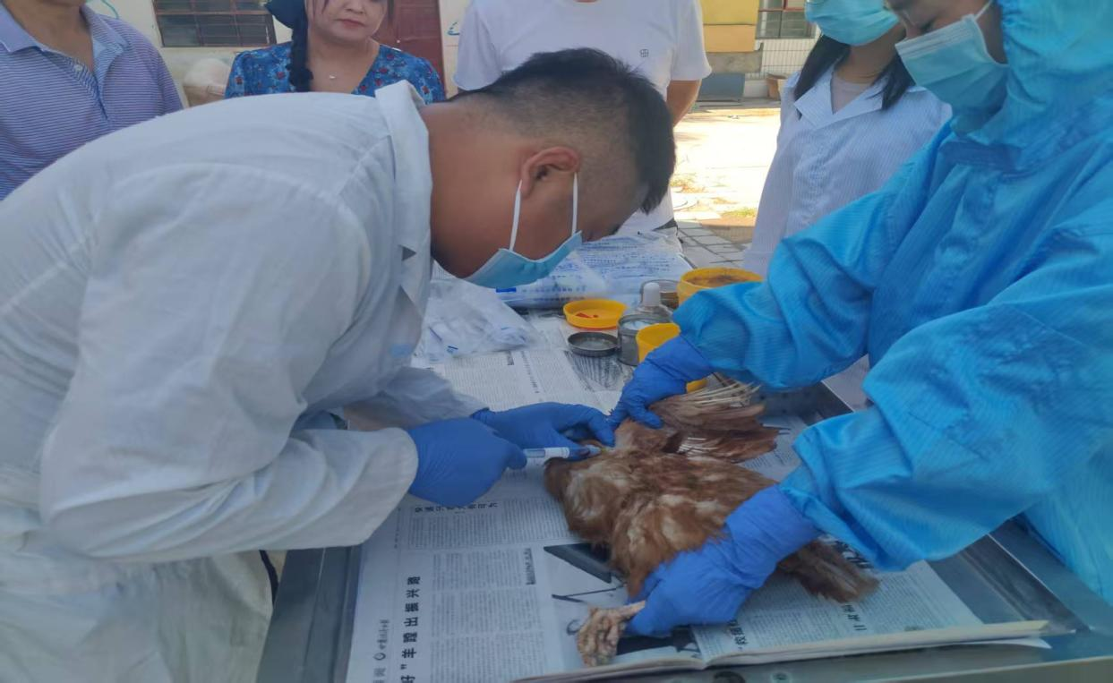 本次主題黨日活動,采取現場教學方式,針對動物疫病防治員業務技能進行崗位培訓,內容主要有雞翅靜脈采血、雞心臟采血、雞體解剖與采樣三個部分,大家輪流操作,相互交流分享經驗,達到了理論和實踐結合、演練和實戰接軌、比賽和練兵同步的目的,也激發了黨員干部學理論、強技能、鉆業務、促落實的積極性和主動性。