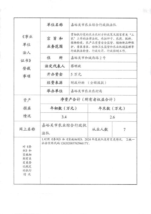 嘉峪關(guān)市農(nóng)業(yè)綜合行政執(zhí)法隊(duì)事業(yè)單位法人年度報(bào)告書(2024年度)