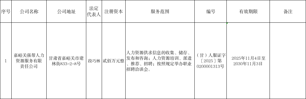 關于嘉峪關強幫人力資源服務有限責任公司申請《人力資源服務許可證》的公示