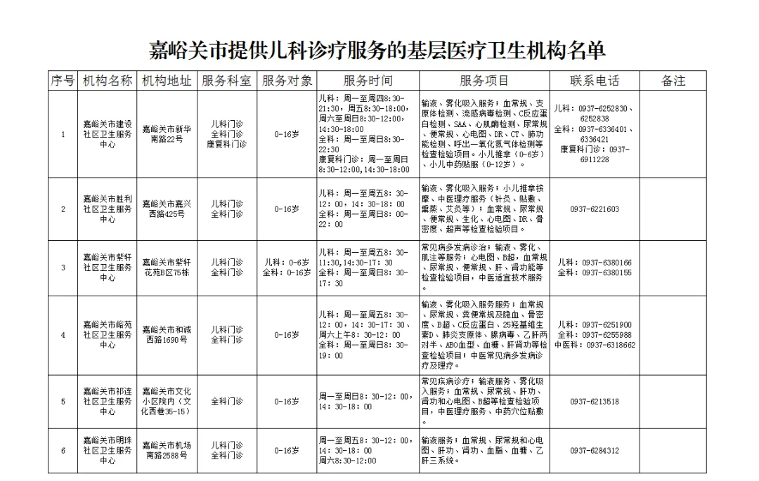 嘉峪關(guān)市衛(wèi)生健康委員會關(guān)于公布提供兒科診療服務(wù)基層醫(yī)療衛(wèi)機構(gòu)名單的公告