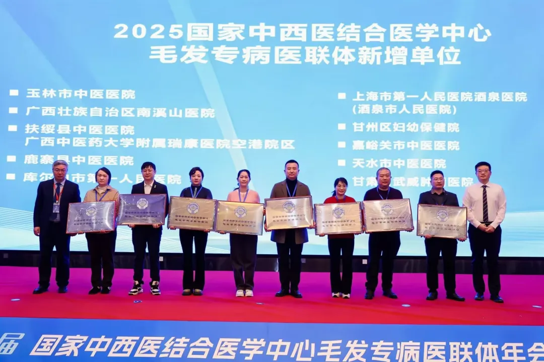 近日,第七屆國家中西醫(yī)結(jié)合醫(yī)學(xué)中心毛發(fā)專病醫(yī)聯(lián)體年會暨建設(shè)管理論壇隆重召開。在這場匯聚全國毛發(fā)診療領(lǐng)域頂尖專家、聚焦行業(yè)發(fā)展前沿的學(xué)術(shù)盛會與合作交流平臺上,嘉峪關(guān)市中醫(yī)醫(yī)院憑借在中西醫(yī)結(jié)合診療領(lǐng)域的扎實基礎(chǔ)與積極探索,成功被授予“國家中西醫(yī)結(jié)合醫(yī)學(xué)中心毛發(fā)專病醫(yī)聯(lián)體單位”,成為 2025年該醫(yī)聯(lián)體的新增重要成員。這標(biāo)志著嘉峪關(guān)市中醫(yī)醫(yī)院在毛發(fā)疾病診療領(lǐng)域正式邁入國家級協(xié)作發(fā)展陣營,也為嘉峪關(guān)及周邊地區(qū)毛發(fā)疾病患者帶來更優(yōu)質(zhì)、更專業(yè)的醫(yī)療服務(wù)新希望。