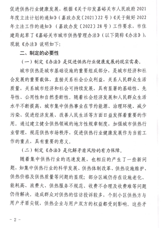 《嘉峪關市城市供熱管理辦法》政策解讀稿